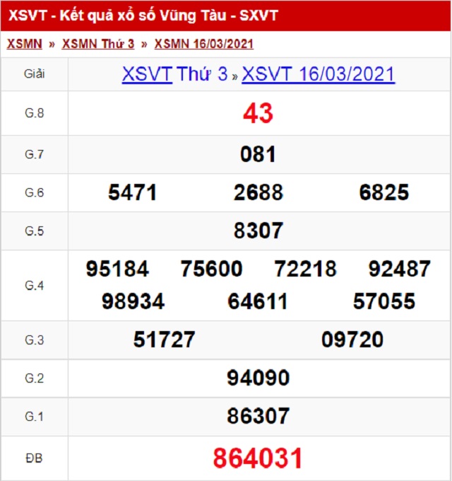 Kết Quả Sổ Xố Vũng Tàu thứ 3 ngày 16/3/2021
