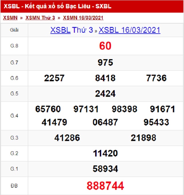 Kết Quả Sổ Xố Bạc Liêu thứ 3 ngày 16/3/2021