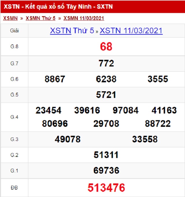 Kết Quả Sổ Xố Tây Ninh thứ 5 ngày 11/3/2021