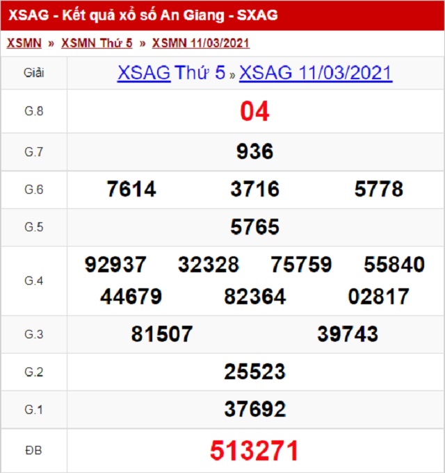 Kết Quả Sổ Xố An Giang thứ 5 ngày 11/3/2021