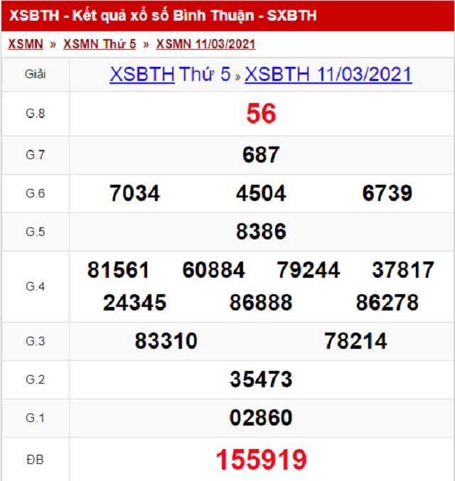 Kết Quả Sổ Xố Bình Thuận thứ 5 ngày 11/3/2021