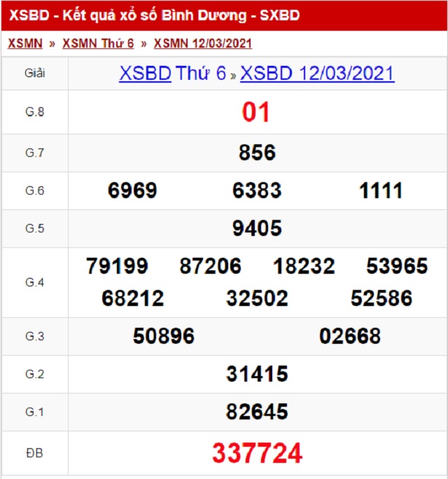 Kết Quả Sổ Xố Bình Dương thứ 6 ngày 12/3/2021