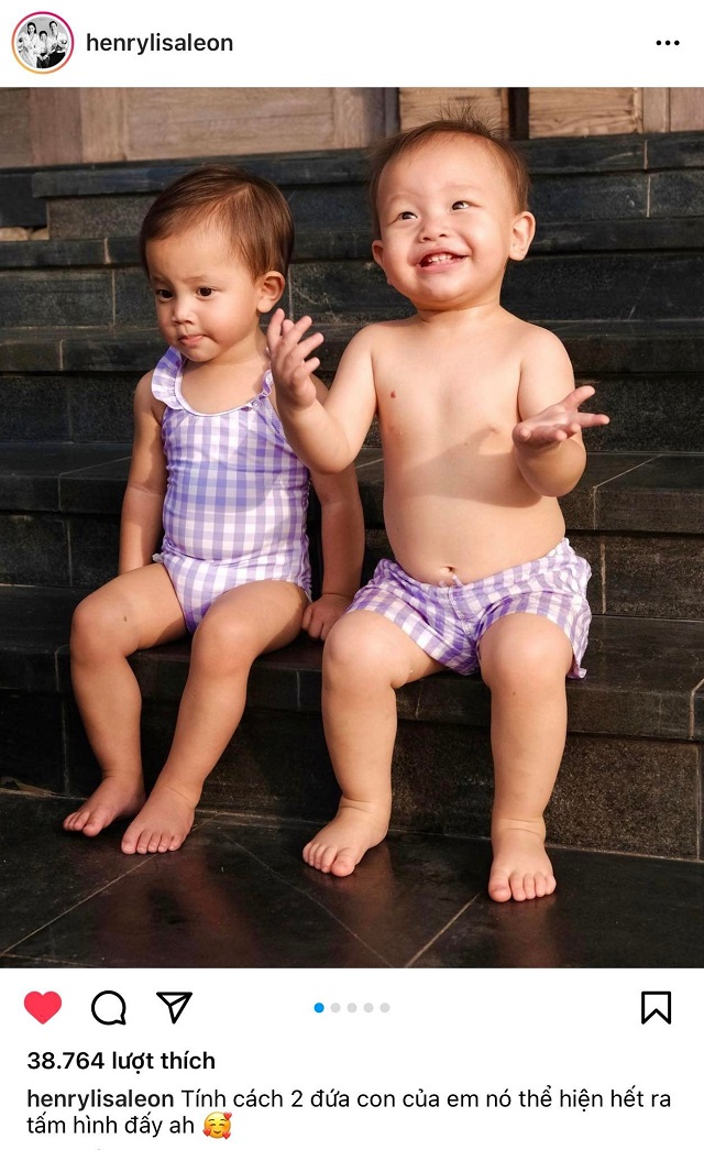 Dân tình không khỏi thích thú khi cặp song sinh nhà Hà Hồ diện đồ bơi đôi, ngồi sát nhnau trên bậc thang. Trong khi Leon hớn hở tươi cười suốt thì chị Ba Lisa lại có vẻ trầm ngâm, như đang suy tư điều gì đó. "Nữ hoàng giải trí" chốt luôn 1 câu: "Tính cách 2 đứa con của em nó thể hiện hết ra tấm hình đấy ạ". Theo đó, cậu út là em bé hiếu động, tinh nghịch, luôn vui vẻ và "cà chớn" với mọi người xung quanh. Trong khi đó, Lisa lại khá "chín chắn" so với cậu em sinh đôi. Cô bé hay quan sát, ham học hỏi, có đôi lúc lại "nghĩ ngợi" khiến mẹ Hà nhiều khi phải thốt lên ngạc nhiên, gọi con gái là "bà già".