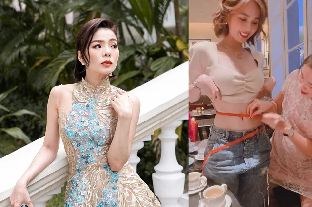 "Nữ hoàng phòng trà" cá tính với set đồ đen phong cách mạnh mẽ. Tuy nhiên, cô chỉ khoác hờ chiếc áo da chất lừ để khoe ra áo croptop ngắn cũn có phần ngực áo may bằng vải xuyên thấu mặc lót bên trong. Thiết kế này giúp giọng ca Nếu Em Được Chọn Lựa khoe khéo được vòng 1 căng đầy sau lớp áo mỏng và toàn bộ phần eo thon gọn, săn chắc. Vòng 2 nuột nà của Lệ Quyên dư sức "vượt mặt" đàn em Ngọc Trinh - người từng tự hào có vòng eo nhỏ nhất Việt Nam, thậm chí còn làm hẳn một bộ phim có tựa đề "Vòng eo 56".