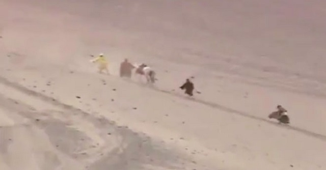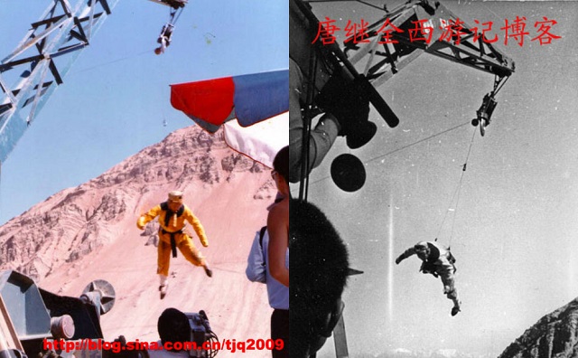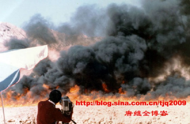 Kết thúc cảnh đi trên sườn cát, ai nấy đều mệt ngoài, gần như kiệt sức dưới cái nắng như thiêu như đốt. Thời gian buổi trưa là lúc nóng đỉnh điểm mà cả ekip vẫn phải sốc nhau đi quay cảnh lửa thiêu ở Hỏa Diệm Sơn. Dù mọi người trong đoàn phim đứng cách xa hàng trăm mét nhưng ngọn lửa dữ dội tỏa ra sức nóng khủng khiếp đến nỗi ai cũng cảm nhận được độ nóng bỏng khi đó. Ấy vậy mà Lục Tiểu Linh Đồng vẫn phải treo mình lên máy cẩu để thực hiện cảnh bay lượn trên sa mạc.