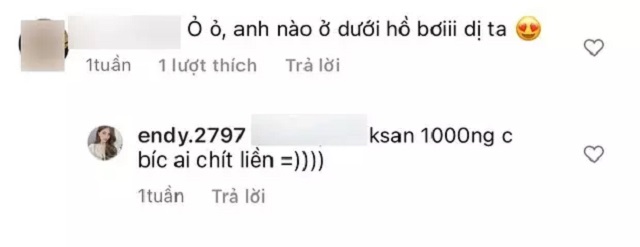 Trước tín hiệu lộ liễu như vậy, một cư dân mạng liền chất vấn hot girl sinh năm 1997 rằng: "Anh nào đang bơi dưới hồ bơi vậy ta?". Cô nàng liền có màn đáp trả cực kì khéo léo: "Khách sạn 1000 người chị biết ai chết liền". Thế nhưng, dù Uyên Endy có trả lời khéo cỡ nào thì dân tình dường như đã chắc chắn nhân vật quen thuộc dưới hồ bơi kìa là "ai đó" rồi!