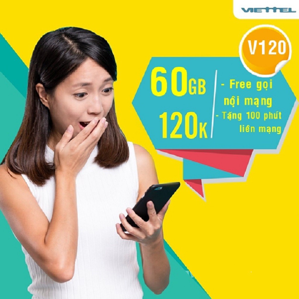 1. ViettelV120 được đánh giá là gói cước có mức giá vừa phải và khá phổ biến hiện nay. Khách hàng đăng ký thành công V120 sẽ có ngay 60 GB data (2 GB/ngày), miễn phí các cuộc gọi nội mạng (20 phút/cuộc) và 50 phút gọi ngoại mạng trong 30 ngày.