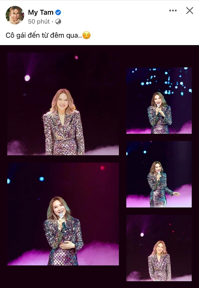 Sáng 22/5, trên trang fanpage Facebook, Mỹ Tâm chia sẻ loạt ảnh mới nhất được chụp trong đêm diễn hôm qua 21/5.