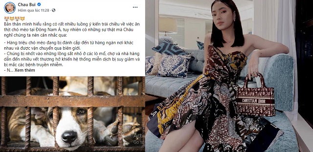 Mới đây, trên trang cá nhân, Châu Bùi gây chú ý khi chia sẻ dòng trạng thái nói về vấn đề ăn thịt chó. Cụ thể, cô viết: