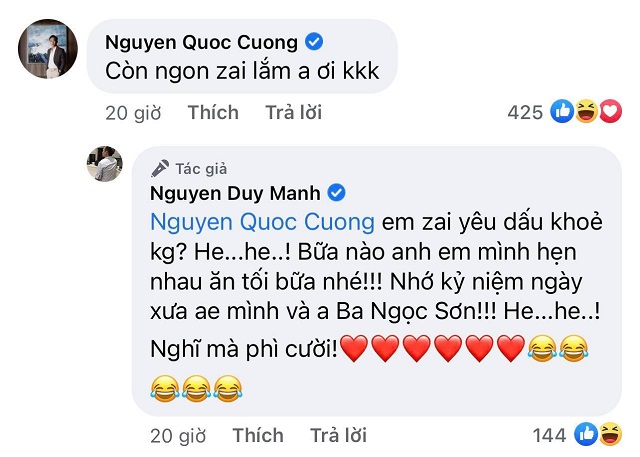 Mới đây, Duy Mạnh tiếp tục gây chú ý khi để lộ mối quan hệ thân thiết với "đại gia phố núi" Cường Đô la. Cụ thể, khi đăng tải một clip hài hước trên trang cá nhân, Cường Đô la đã để lại một bình luận bên dưới: "Còn ngon giai lắm anh ơi".