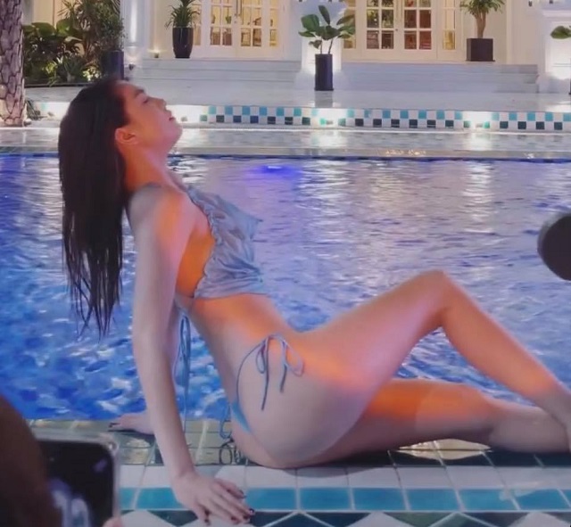 Mới đây, mỹ nhân Trà Vinh đã đăng tải lên story trang cá nhân Facebook đoạn clip "thả dáng" bên hồ bơi trong biệt thự triệu đô của Vũ Khắc Tiệp. Người đẹp sinh năm 1989 diện bikini khoe làn da trắng mịn màng. Vóc dáng tuổi 33 khiến bao người ngưỡng mộ vì quá nóng bỏng, 3 vòng "chuẩn từng cen-ti-mét" như đốt mắt người nhìn.
