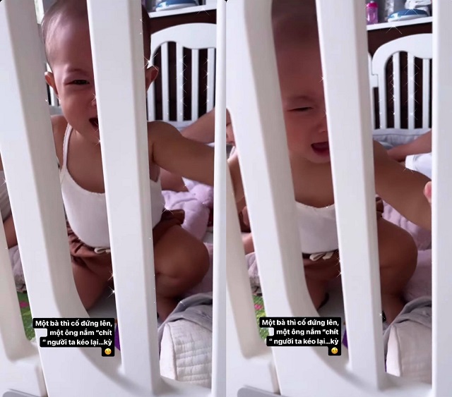 Kèm theo hình ảnh của Lisa, Hồ Ngọc Hà có ghi kèm caption: “Một bà thì cố đứng lên, một ông nắm chít người ta kéo lại, kỳ” . Theo đó, có lẽ nguyên nhân khiến Lisa bật khóc là bởi cô bé muốn đứng dậy nhưng em trai Leon cứ níu kéo lại làm em tức giận và bật khóc nức nở.