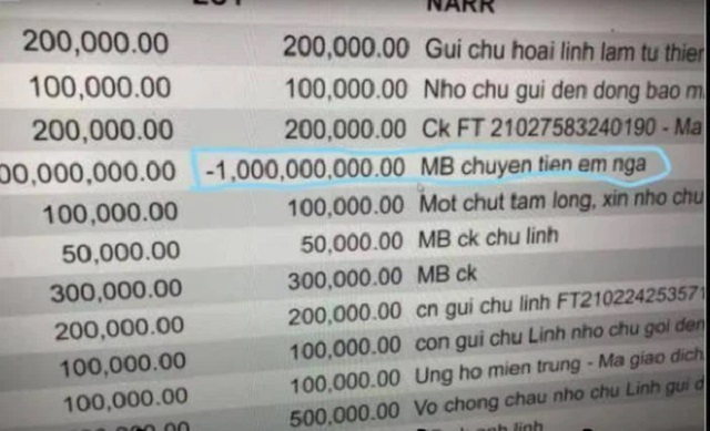 Cư dân mạng phân tích rằng tài khoản từ thiện của nam danh hài có nhiều giao dịch mang nội dung "ủng hộ miền Trung", "gửi chú Hoài Linh làm từ thiện"... Cùng thời điểm đó, tài khoản của Hoài Linh lại xuất hiện giao dịch chuyển đi 1 tỷ đồng với nội dung: "MB chuyen tien em nga". Rõ ràng, trong clip của Hoài Linh chưa hề đề cập đến khoản tiền này.