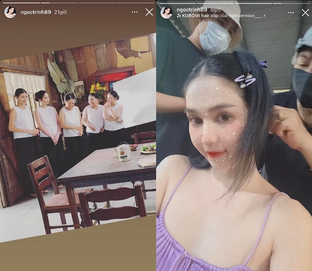 Đàn anh thân thiết liên tục kề cận "vợ" mới, Ngọc Trinh từ "gà cưng" nay bỗng "thất sủng", còn liên tục bị gọi tên vào những khoảnh khắc mặn nồng của Vũ Khắc Tiệp và Angela Poy. Tuy nhiên, có vẻ như "nữ hoàng nội y" không quá bận tâm tới "tình mới" của "tình cũ". Trên Instagram, chân dài Trà Vinh mải mê cập nhật quá trình quay phim mới, chia sẻ clip với biểu cảm đáng yêu khi ở nhà.