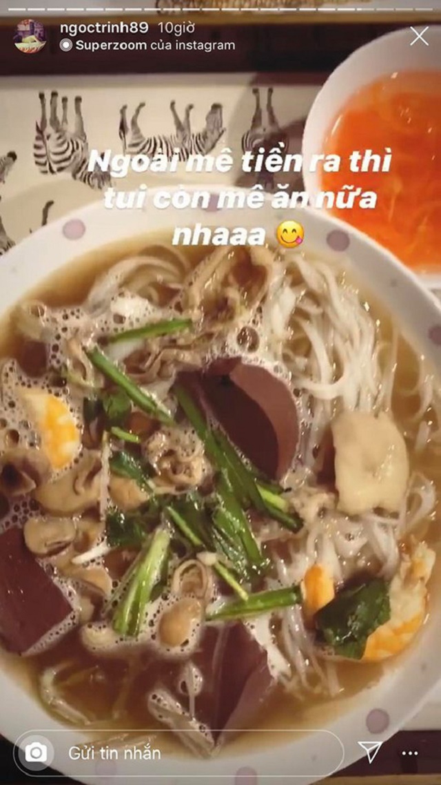 Sở hữu thân hình mảnh mai, thật khó tin khi Ngọc Trinh lại không hề ăn theo chế độ khắc nghiệt nào. Chính trợ lý Ngọc Trinh vừa tiết lộ chế độ ăn bất thường của cô chủ: "18h 1 dĩa bột chiên, 22h 1 tô bún nước lèo. Tại sao bả có thể làm điều đó?".
