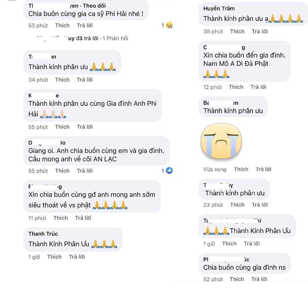 -Thành kính phân ưu cùng gia đình anh Phi Hải. Cầu mong linh hồn anh sớm được siêu thoát nơi chín suối.