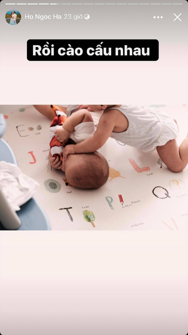 Kể từ khi có thêm hai con sinh đôi, Hồ Ngọc Hà cũng "đổi nghề" làm "trọng tài full time" phân xử cho Lisa và Leon. Bất cứ khi nào hai con tranh giành đồ ăn, đồ chơi, cô đều phải đứng giữa, tìm cách giải quyết sao cho "vừa lòng chị, hợp ý em". Chỉ những ai từng trải mới hiểu công việc này "đau đầu" đến mức nào.