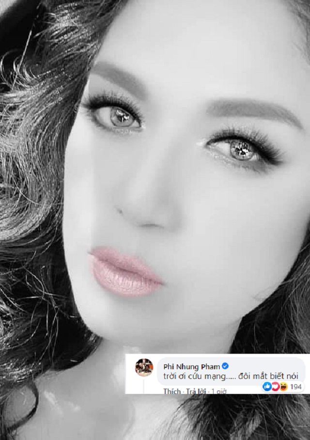 Mới đây, cư dân mang còn "bắt gặp" Phi Nhung đi bình luận dạo. Cụ thể, bên dưới bài đăng của 1 người bạn, giọng ca Bông Điên Điển đã bày tỏ sự khen ngợi bằng câu bình luận cảm thán: "Trời ơi cứu mạng, đôi mắt biết nói".