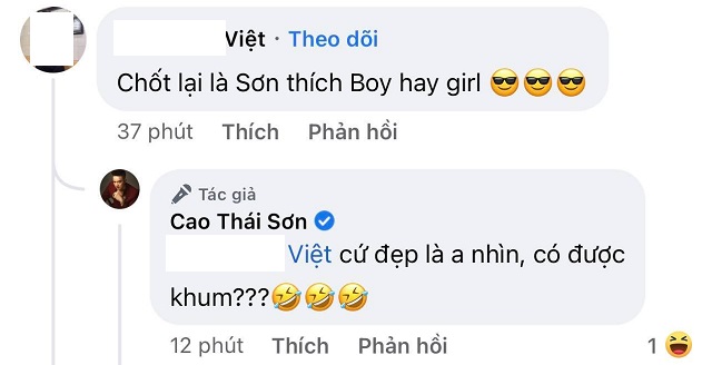Cao Thái Sơn công khai ôm mỹ nhân diện bikini nóng bỏng, nói thẳng về giới tính thật gây ngỡ ngàngĐáng chú ý, giọng ca Con Đường Mưa còn đính kèm bài đăng hình ảnh anh chụp chung cùng một mỹ nhân diện bikini cực kì nóng bỏng, công khai ôm eo cô gái này. Ngay lập tức, dưới phần bình luận, một khán giả thắc mắc: "Chốt lại là Sơn thích boy (con trai) hay girl (con gái)?". Cao Thái Sơn liền thẳng thắn đáp lời: "Cứ đẹp là anh nhìn, có được không".