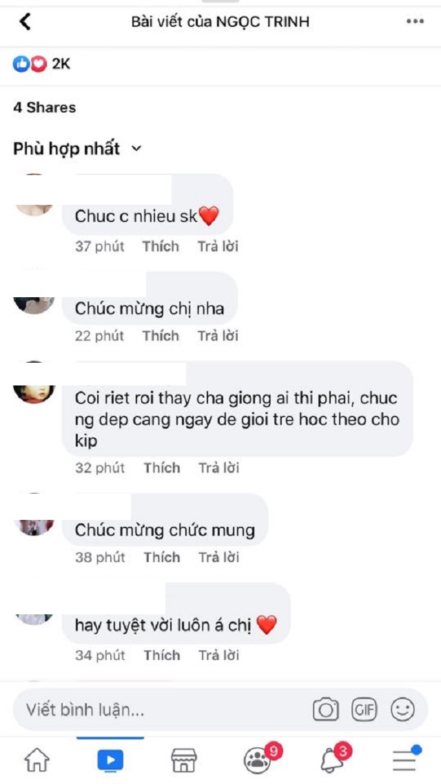 Bài đăng của "nữ hoàng nội y" nhận được rất nhiều like và bình luận. Đa số khán giả đều gửi tới cô lời chúc sức khỏe, chúc mừng, không ít tỏ ra bất ngờ và thích thú trước trải nghiệm của chân dài này.