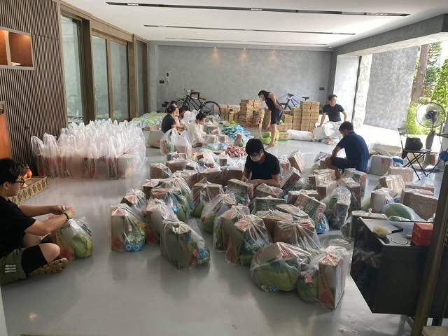 Theo đó, Cường Đô la đã thu mua số lượng lớn lương thực như: gạo, mì, sữa,… chất đầy trong nhà. Tiếp đó, Đàm Thu Trang, Subeo cùng nhiều người khác phân chia thành nhiều phần rồi đóng thùng nhỏ để gửi đến bà con trước giờ siết giãn cách. Em bé Suchin còn nhỏ nhưng rất ngoan ngoãn, tự giác chơi để ba mẹ và anh Hai chuẩn bị hàng cứu trợ cho bà con.