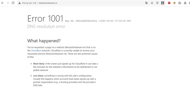 Cụ thể, khi truy cập vào đường link "khudulichdainam.vn", nhiều người đã phát hiện website này đã không còn truy cập được và hiện dòng chữ Error 1001. Hiện tại, nhiều người đang không biết là website đang bảo trì hay có sự can thiệp của các hac.ker. Ngoài ra, nhiều người cũng phát hiện toàn bộ thông tin liên quan tới website của Đại Nam trên Wikipedia cũng đã bị gỡ bỏ.