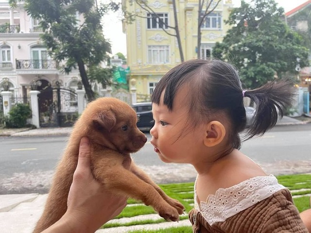 Daddy: Yes I think we can. Puppy waiting for you at home now (Bố nghĩ là có. Cún con giờ đang đợi con ở nhà đó).
