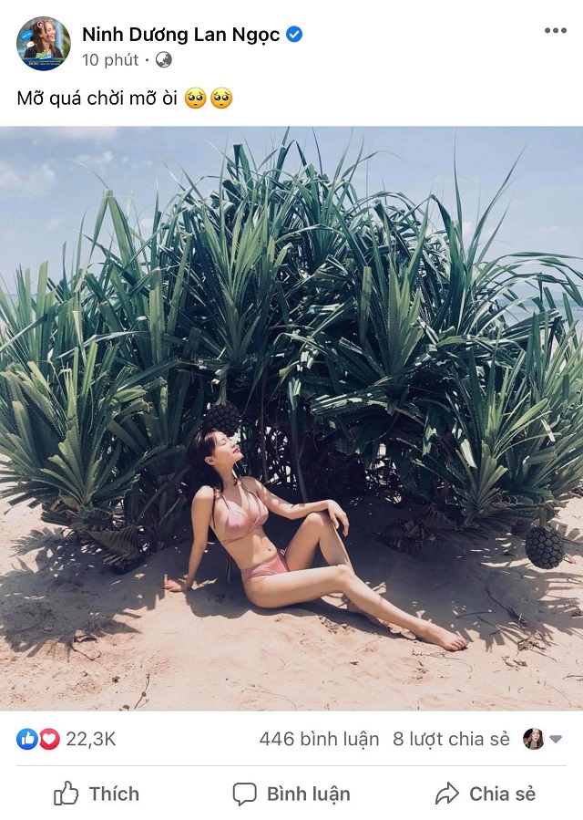 Mới đây, trên Facebook, Ninh Dương Lan Ngọc đăng tải một bức ảnh gợi cảm làm dân tình không ngừng cảm thán.
