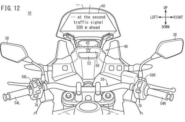 Cụ thể, bản thiết kế lộ ra từ Cục sở hữu trí tuệ Nhật Bản cho thấy phác thảo màn hình hiển thị HUD trên xe máy của Honda với màn hình tinh thể lỏng được lắp trên tấm chắn trước, động cơ và cả bản đồ thông qua hệ thống định vị GPS.