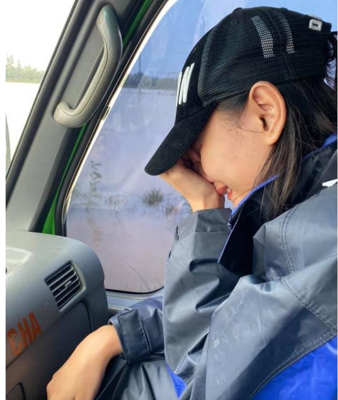 Sau khi được nhiều người động viên, Lệ Hằng và Lê Thúy đã lấy lại tinh thần và tiếp tục công việc cứu trợ bà con vùng lũ.