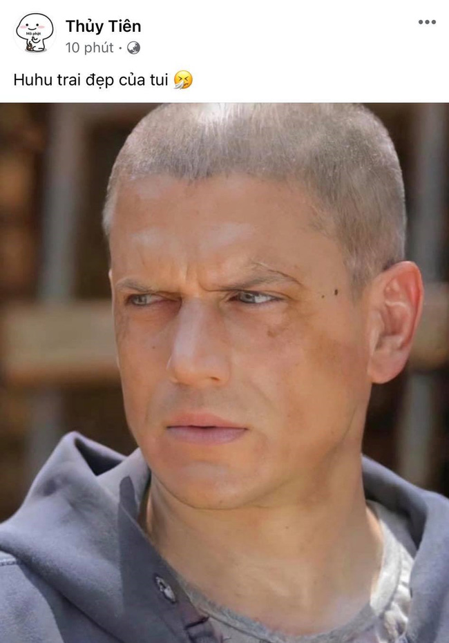 Đây cũng là lần hiếm hoi mà nữ ca sĩ đăng tải hình ảnh một người đàn ông khác không phải là ông xã của mình. Nhưng khán giả mới nhanh chóng vỡ lẽ ra rằng người đàn ông ‘chiếm được trái tim’ của Thủy Tiên là nam diễn viên phim “Vượt ngục” Wentworth Miller.