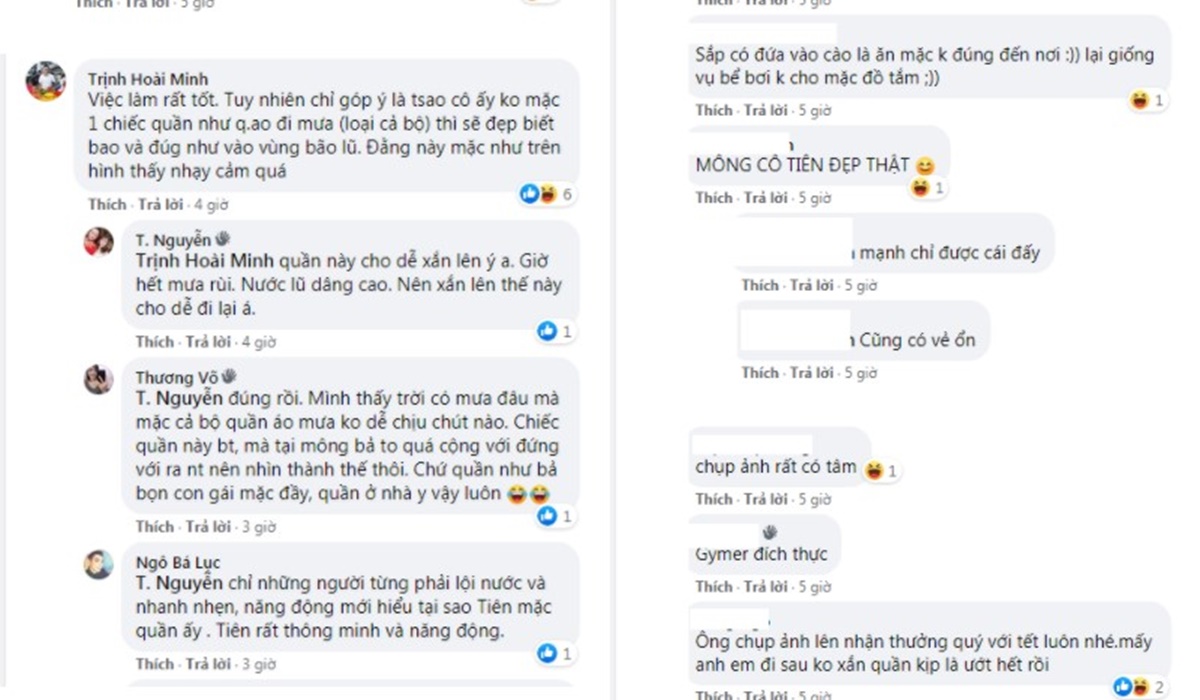 Theo đó, vì phải xăn ống quần cao nên vòng 3 của Thủy Tiên vô tình thành chủ để săm soi của những cư dân mạng ‘xấu tính’. Điều này khiến nhiều người vô cùng bức xúc vì trong khi Thủy Tiên đang phải cực khổ để giúp đỡ bà con miền trung thì lại có những thành phần ý thức quá kém, chú ý đến những tiểu tiết một cách phản cảm. Từ tình huống này mới thấy một số bộ phận vẫn chưa biết cách ứng xử trên không gian mạng, gây ra những ảnh hưởng tiêu cực cho những người dùng khác.