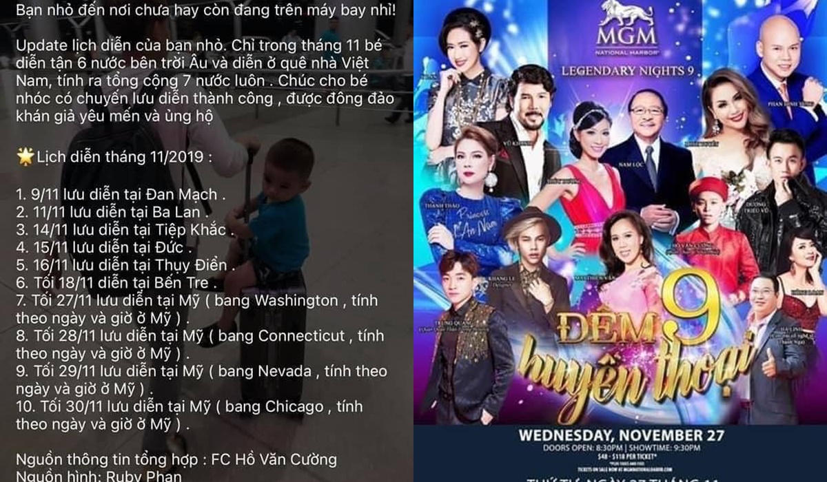 Theo đó, chỉ trong 1 tháng 11/2019, Hồ Văn Cường đã lưu diễn 7 nước Châu Âu với lịch diễn kít mít trong 10 đêm từ 9-30/11. Thêm vào đó, vào năm 2016, khi Hồ Văn Cường chỉ mới 11 tuổi, cậu bé đã có đêm diễn tại Bắc Ninh kéo dài tới 2-3 giờ sáng.