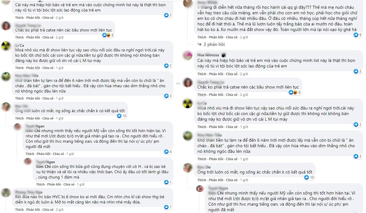 “Nhỏ xíu mà đi show liên tục vậy sao chịu nổi sức đâu ra nghỉ ngơi trời, cái này không bóc lột chứ là gì nữa,tiền tự giữ được thì không nói không bàn, đăng này không được giữ mà nói vô ơn”