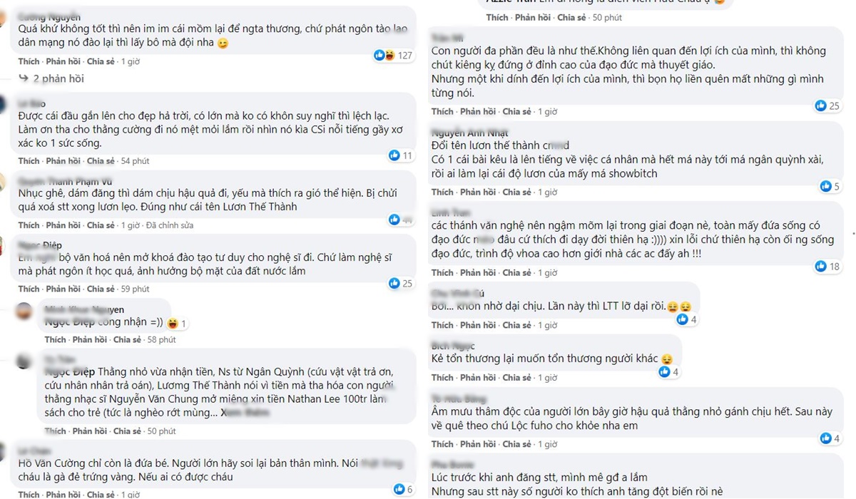 Nhiều bình luận chỉ trích nhắm đến Lương Thế Thành: