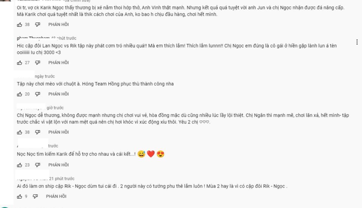 “Tập này hay xuất sắc luôn, cái đoạn Ngọc đi tìm Karik như hai vợ chồng thiệt luôn. Yêu 2 cặp này quá đi mà!”