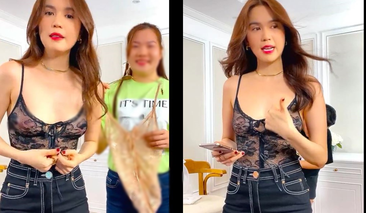 ‘Nữ hoàng nội y’ còn không ngại tiến sát vào camera khoe trọng các góc khi diện bộ nội y xuyên thấu để quảng cáo cho sản phẩm của mình. Ngọc Trinh còn tiết lộ phần quà may mắn trong buổi livestream chính là bộ đồ nội y jumpsuit xuyên thấu mà cô đang mặc trên người.