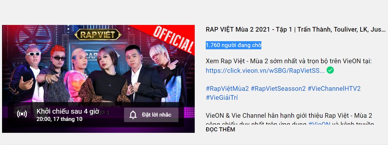 Hàng ngàn người chờ xem Rap Việt mùa 2 trên Youtube