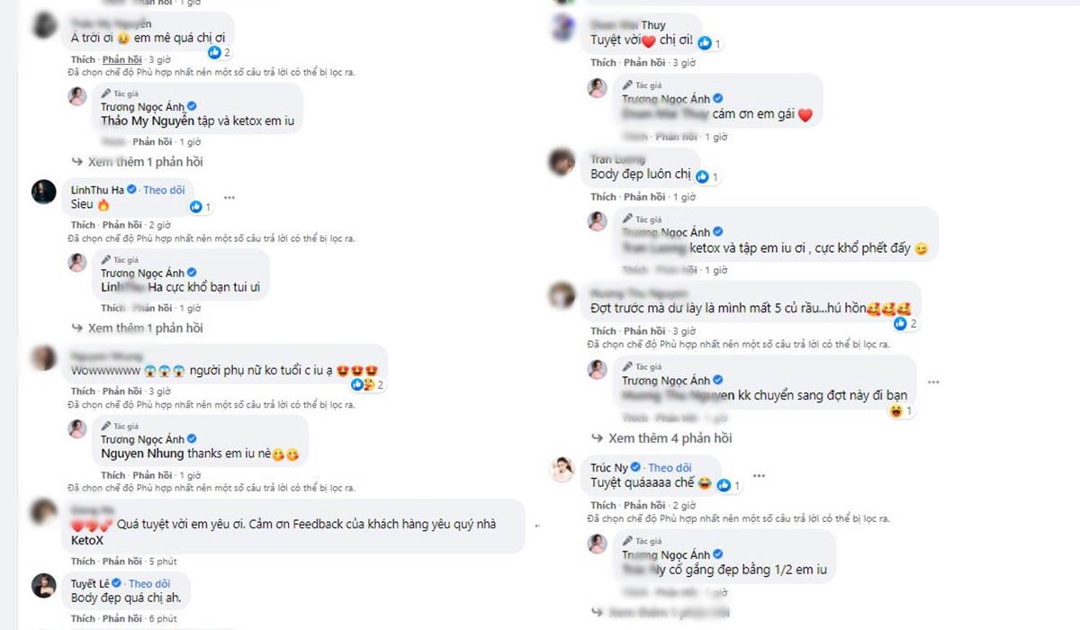 Bài đăng của Trương Ngọc Ánh đã nhận về hàng loạt lời khen, sự ngưỡng mộ cho thân hình khó tin ở U40: