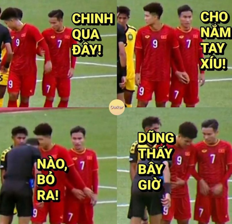Từ thái độ nghi ngờ, cđm đã chuyển sang khen ngợi và tung hô màn quay trở lại của Đức Chinh. Bằng chứng là khi trận đấu còn chưa kết thúc nhiều cư dân mạng đã chế ảnh về sự xuất thần của Hà Đức Chinh.