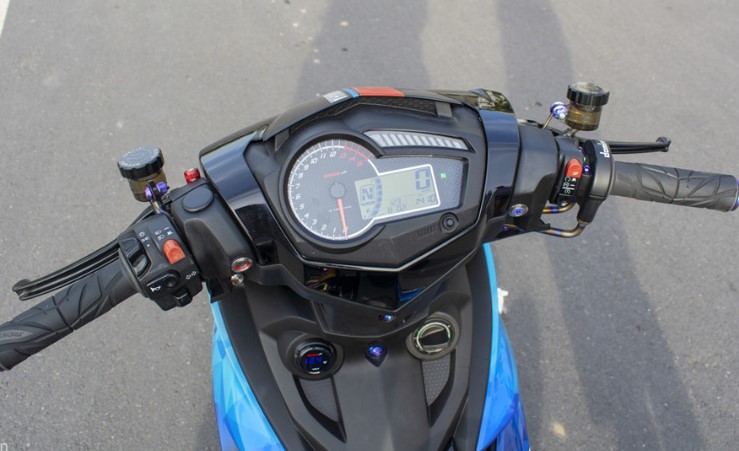 Thêm vào đó, nắp che lốc nồi trong suốt được trang bị nhằm tăng tính thẩm mỹ cho bản độ này. Nhờ sự can thiệp vào bộ phận ECU và bugi, hiệu năng xe cũng được tăng thêm đôi phần.