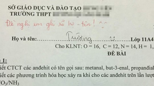 Học sinh này quên ghi luôn cả tên