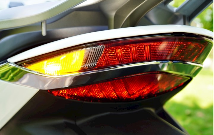 Phần đèn chiếu hậu, cụm đèn đã được thiết kế lại, chia làm 2 phần bằng dãy chrome từ yên xe.