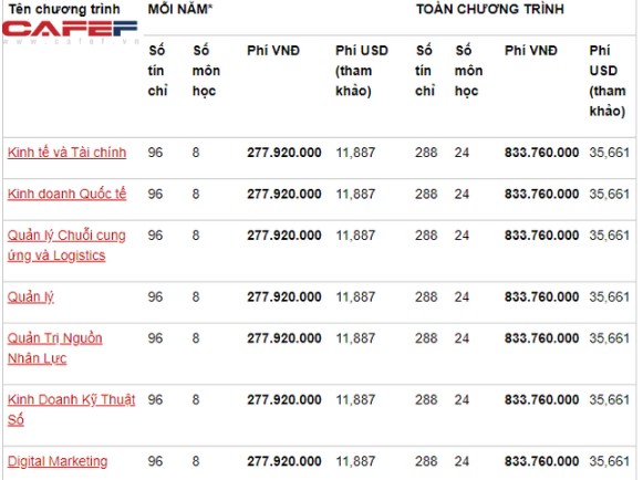 Chi phí học tập ở các trường quốc tê (nguồn ảnh:CafeF)