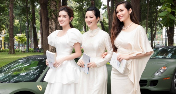 Nhờ ngoại hình xinh đẹp trẻ trung, nên dù là ‘chị đại’ trong dàn chân dài được siêu xe của Ông Đặng Lê Nguyên Vũ đưa đón trong suốt ‘Hành trình trái tim’ nhưng Giáng My không hề kém nổi bật so với loạt mỹ nhân đình đám như Hoa hậu Mai Phương Thúy, Á hậu Huyền My, Hoa hậu Tiểu Vy.