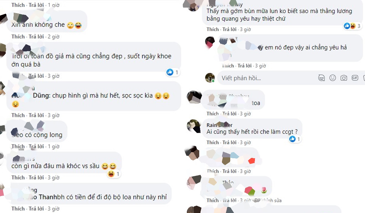 Bên cạnh những bình luận tỏ vẻ thích thú về vóc dáng của Ngân 98, nhiều người thể hiện sự khó chịu với cách ‘khoe thân’ phản cảm của cô. Thậm chí nhiều người đã quá ‘bị thực’ về những màn khoe da thịt của Ngân 98. còn để lại bình luận khiếm nhã: “Trời ơi toàn đồ giả mà cũng chẳng đẹp , suốt ngày khoe ớn quá bà!”, "Thấy mà gớm bùn mữa lun ko biết sao mà Lương Bằng Quang yêu hay thiệt chứ!"