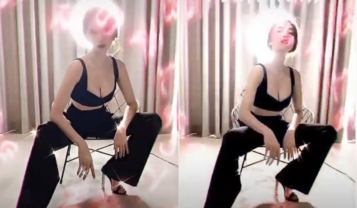 Cụ thể, bắt đầu clip, Ngọc Trinh diện một chiếc váy trần hở vai, bó sát cơ thể, ngắn lên tận đùi và ngồi khép nép. Ai nấy không khỏi ‘hú hồn’ khi Ngọc Trinh định giạng rộng chân ra để tạo dáng. Tuy nhiên, ngay sau đó, ‘nữ hoàng nội y’ đã chuyển nhanh cảnh thay đổi trang phục với một chiếc quần dài và chiếc áo croptop ‘o ép’ vòng 1. Đáng nói, vòng 1 căng tràn của Ngọc Trinh gây chú ý hơn cả vì cô nàng đã từng nhiều người hoang mang vì vòng một ‘lúc có lúc không’ của mình.