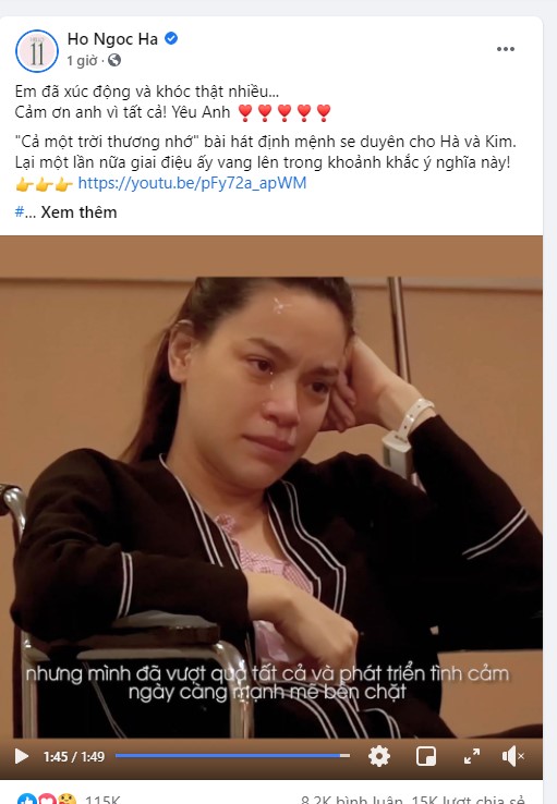 Mới đây, trên trang fapage của Hồ Ngọc Hà đã bất ngờ chia sẻ đoạn clip cầu hôn bất ngờ của Kim Lý.