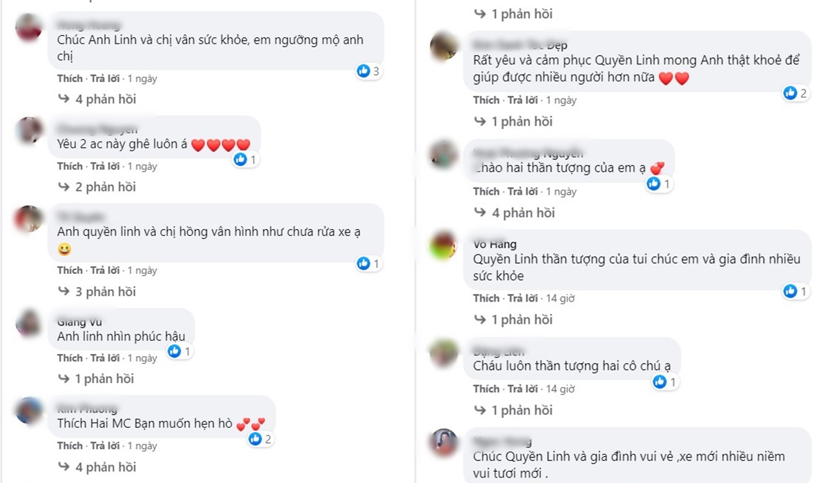 “Rất yêu và cảm phục Quyền Linh mong Anh thật khoẻ để giúp được nhiều người hơn nữa”