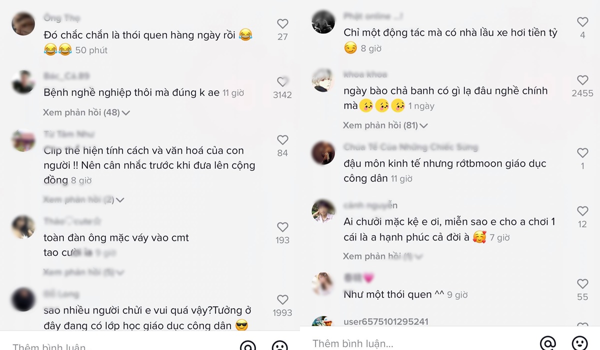 Dưới phần bình luận của clip này, nhiều cư dân mạng đã để lại những bình luận đầy ẩn ý với thái độ có phần 'mỉa mai' Ngọc Trinh: "Chỉ một động tác mà đã có nhà lầu xe hơi tiền tỷ", "đậu môn kinh tế nhưng lại rớt môn Giáo dục công dân", "Như một thói quen", "Bệnh nghề nghiệp".